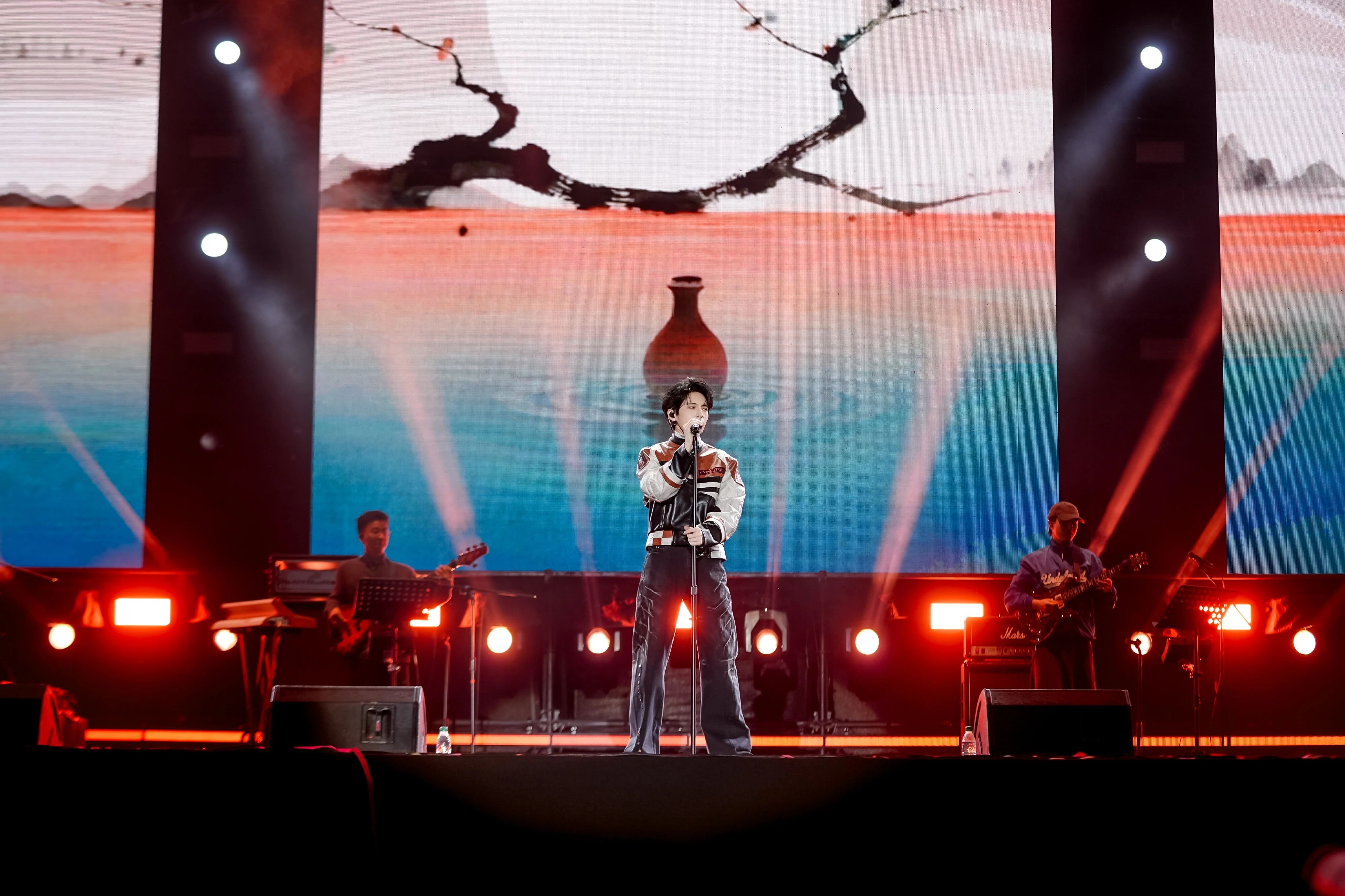 夜幕降临,里运河畔灯光璀璨,音乐与星光交相辉映。开场嘉宾南拳妈妈以《牡丹江》等经典热曲瞬间点燃全场,观众挥舞的荧光棒汇成一片璀璨海洋。随后,Tank吕建忠深情演绎《三国恋》《会长大的幸福》等代表作,熟悉的旋律唤醒了无数人的青春回忆。全能艺人蒲熠星带来了《当萨特与海德格尔干杯》《青春疼痛文学》等歌曲,以诗意与力量兼具的舞台风格,为观众呈现了一场跨越古今的音乐对话。