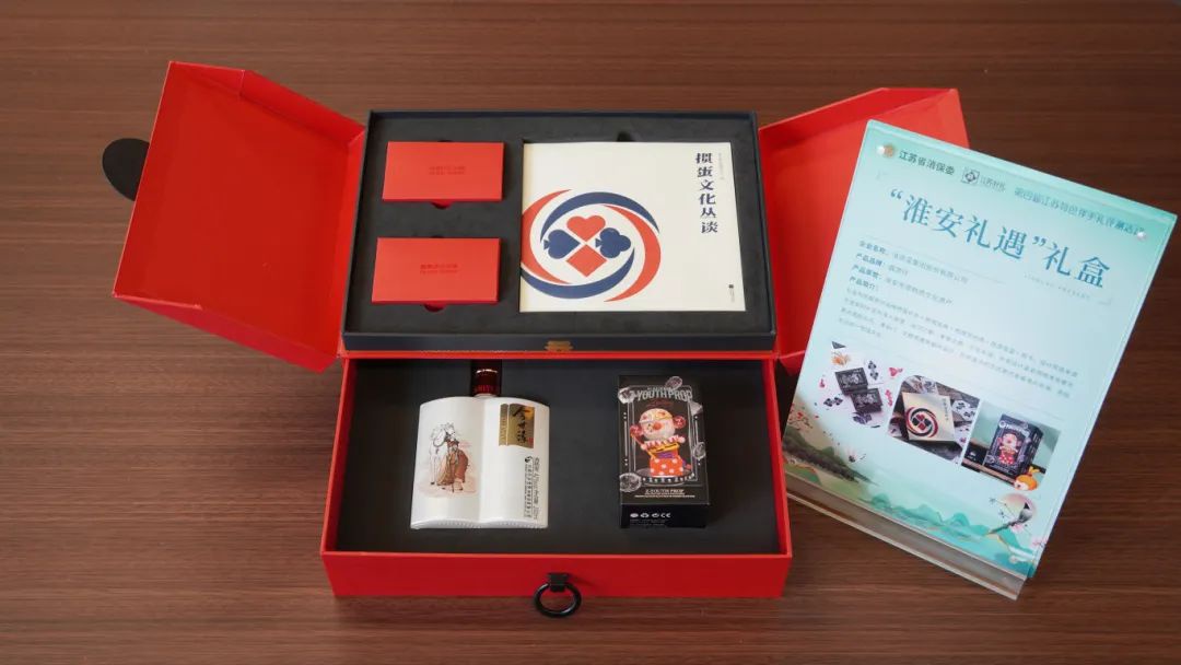 “淮安礼遇”伴手礼深度挖掘淮安历史底蕴,以“伟人故里”“运河之都”“美食之都”“文化名城”4张城市名片为思路,结合“淮安掼蛋、西游盲盒、今世缘文创酒”等产品特色,开合式的礼盒包装融入淮安运河文化、漕运文化、美食文化元素,进一步彰显“壮丽东南第一州”淮安城市形象。