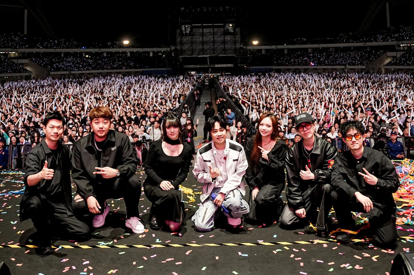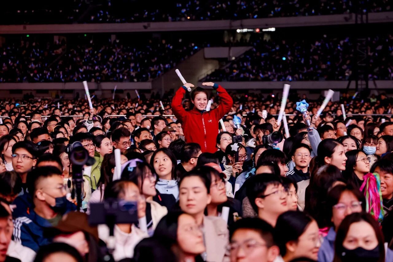 夜幕降临,里运河畔灯光璀璨,音乐与星光交相辉映。开场嘉宾南拳妈妈以《牡丹江》等经典热曲瞬间点燃全场,观众挥舞的荧光棒汇成一片璀璨海洋。随后,Tank吕建忠深情演绎《三国恋》《会长大的幸福》等代表作,熟悉的旋律唤醒了无数人的青春回忆。全能艺人蒲熠星带来了《当萨特与海德格尔干杯》《青春疼痛文学》等歌曲,以诗意与力量兼具的舞台风格,为观众呈现了一场跨越古今的音乐对话。
