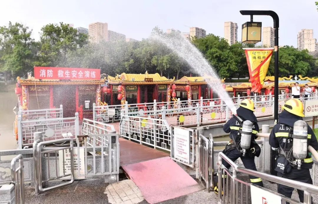 7月29日,市交通运输综合执法支队、清江浦区消防救援大队和市大运河旅游产业发展有限公司在游船码头组织开展船舶消防、救生应急演练活动,大运河旅游公司全体员工参加演练。